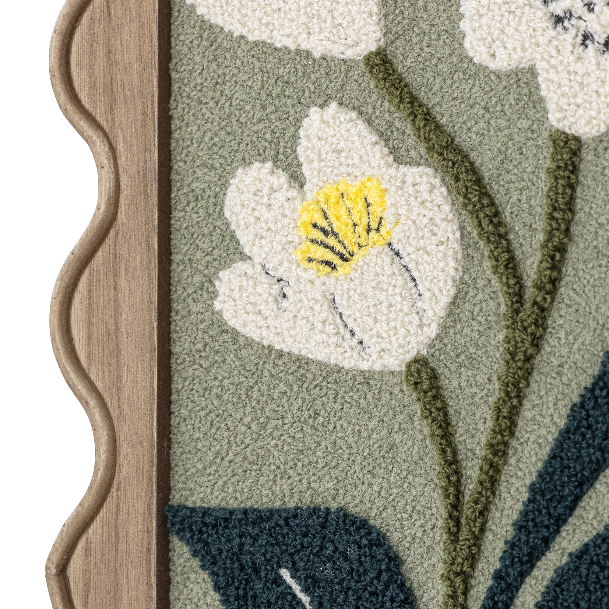 Creative Collection Talan wanddecoratie met geborduurd bloemmotief in stof en golvende lijst in lichte houttint. Lees meer