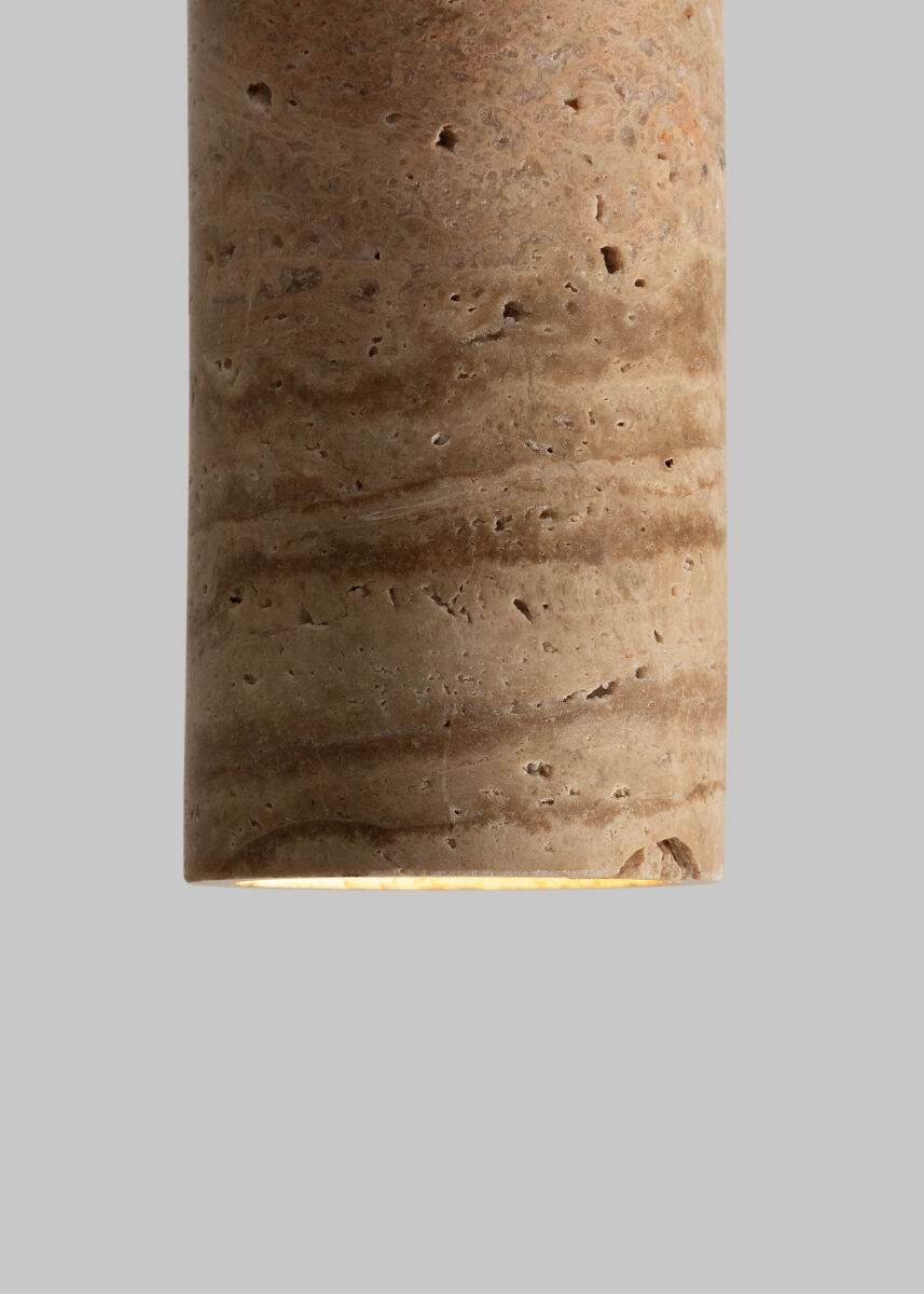 | Materiaal | Deze plafondlamp is vervaardigd uit travertin, een vorm van natuurlijk marmer met een warme, organische uitstraling. Dankzij zijn unieke structuur is elke lamp een klein kunstwerk op zich. |