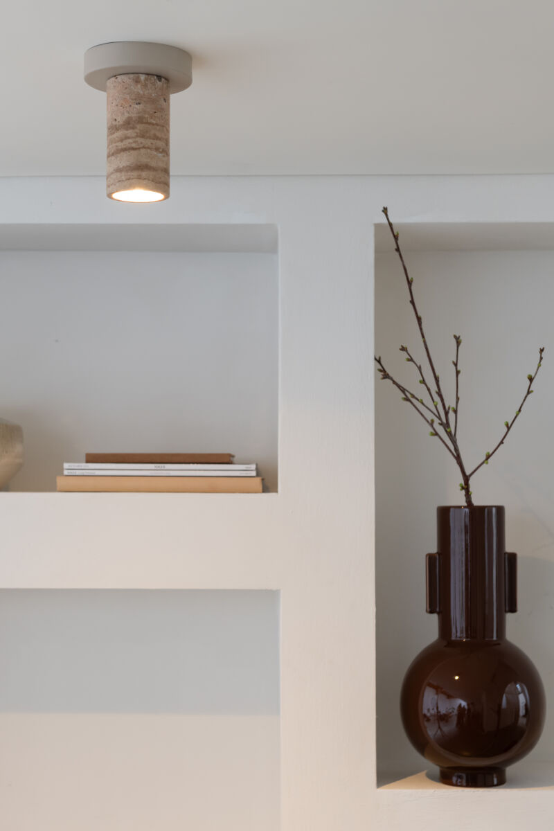 Plafondlamp Tivoli van It’s about RoMi, gemaakt uit zand travertin: een sfeervolle spotlight in natuurlijk marmer met tijdloze flair. Lees meer