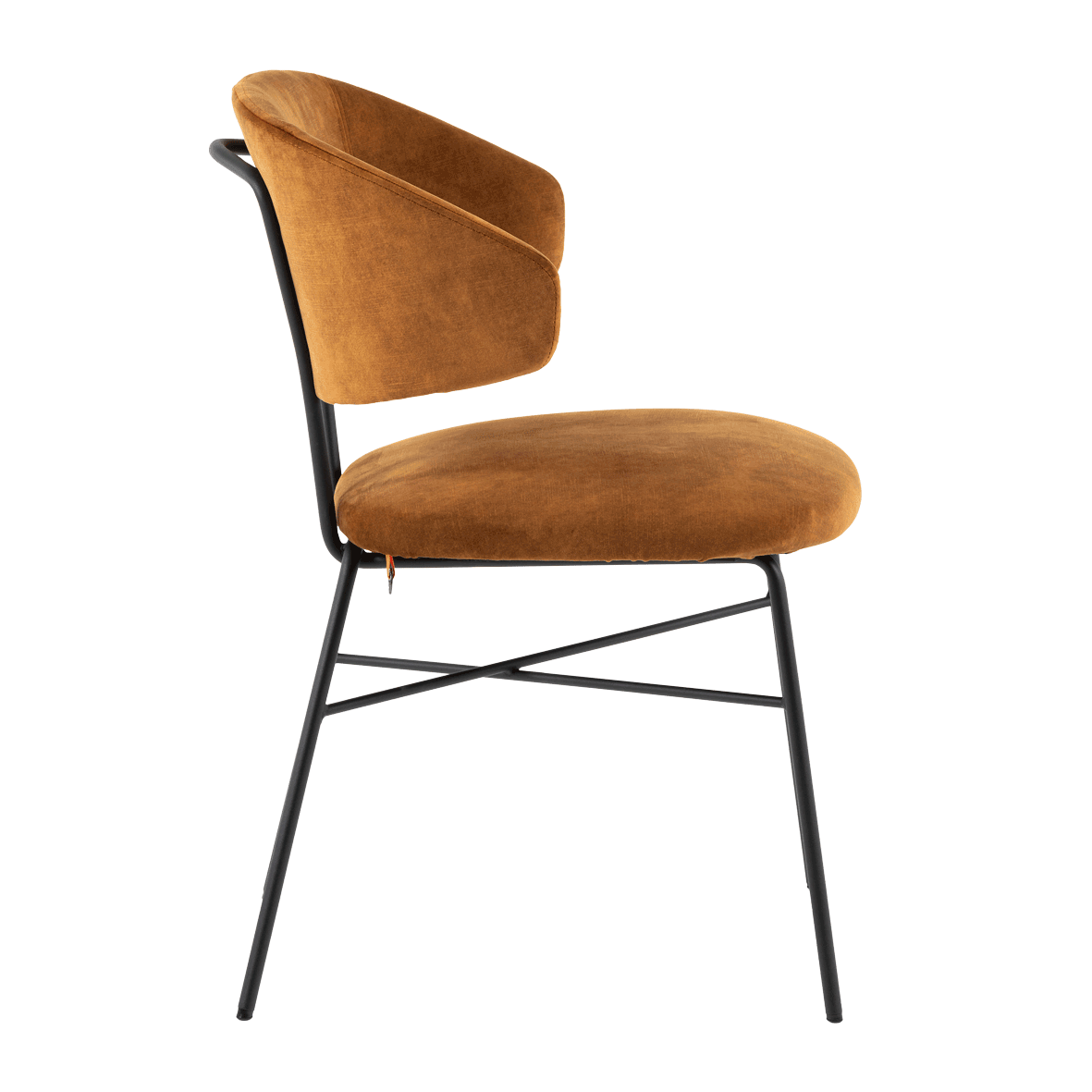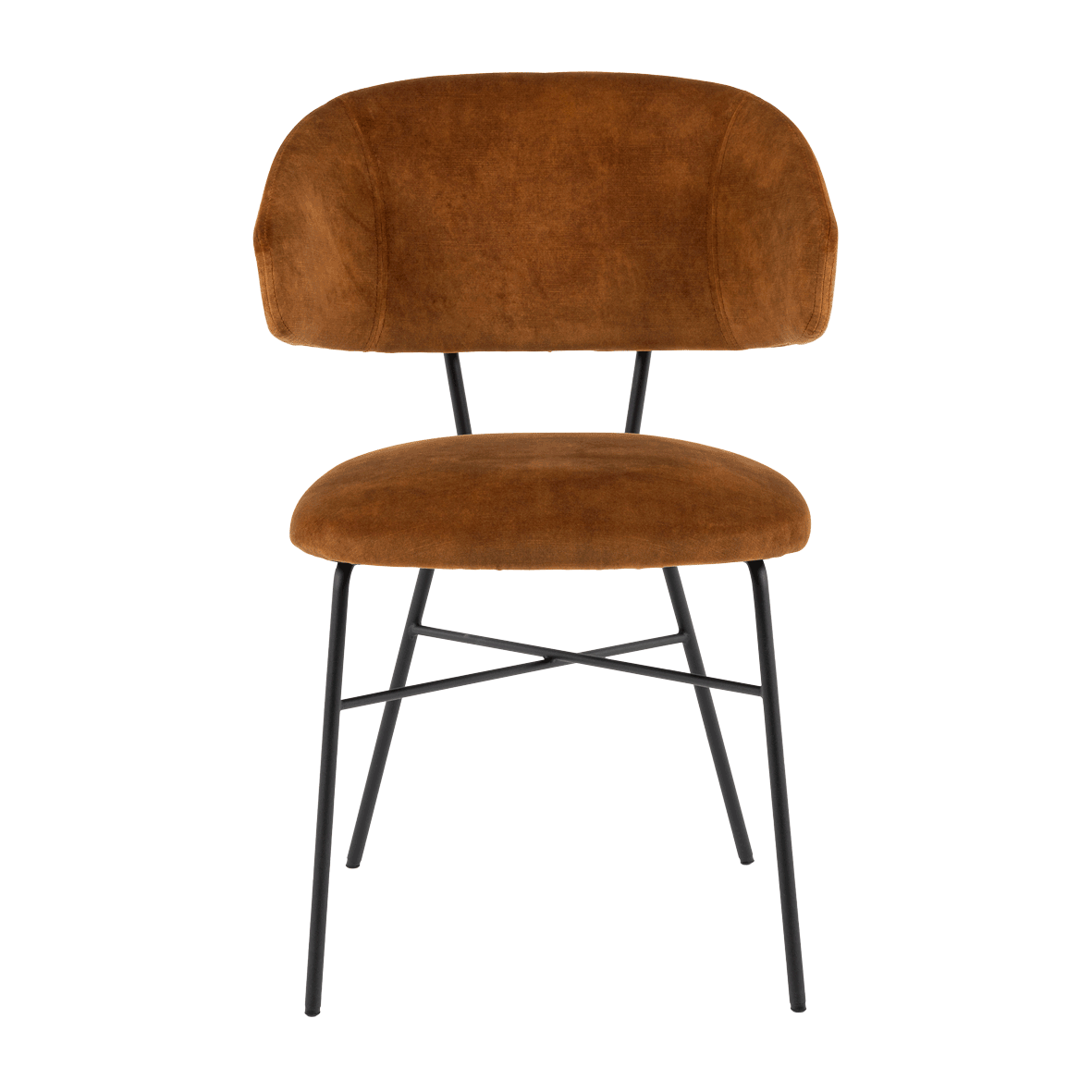 Binnenin schuilt er comfort: elastische banden in de zitting, slimme schuimlagen in de rugleuning en een stabiel frame uit massief beukenhout. De metalen poten zijn ultradun (15 mm diameter) en beschikbaar in een kleur naar keuze. Kies daarbij je favoriete bekleding in stof, leder of kunstleder – en je hebt een stoel die helemaal bij je past.