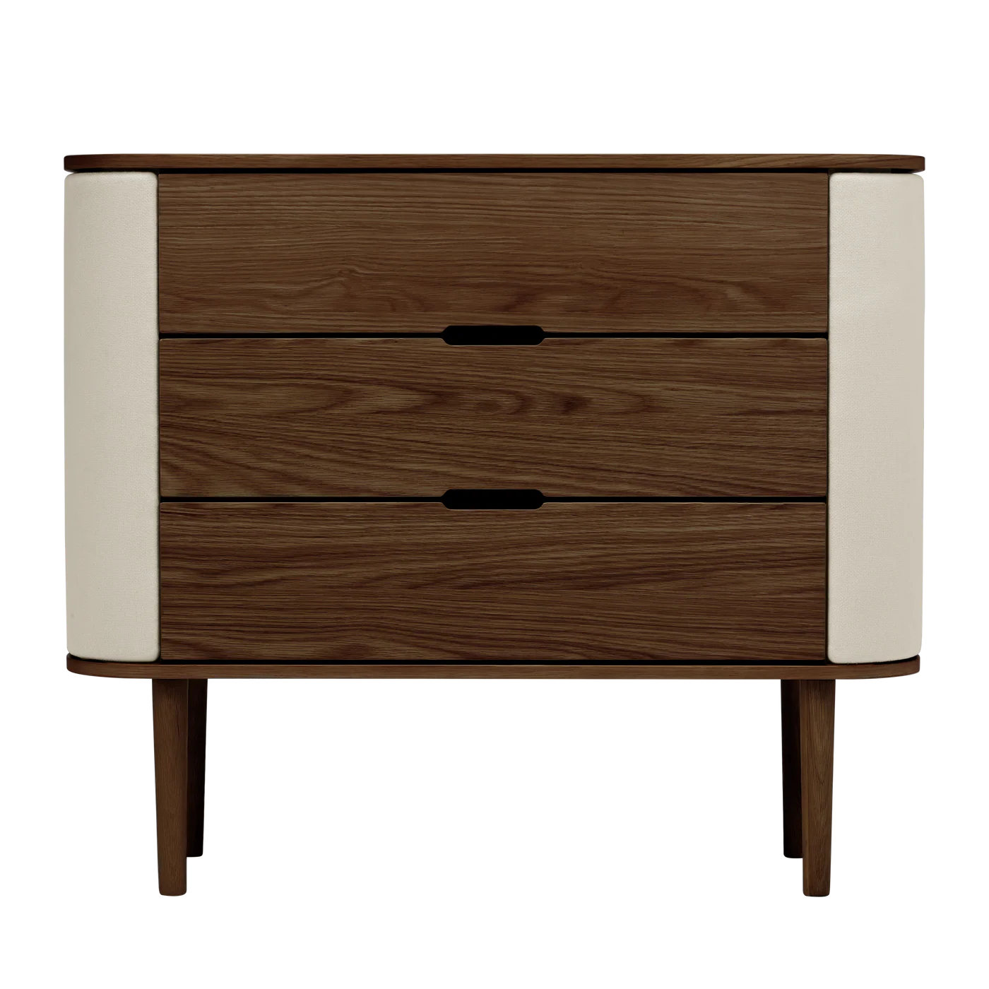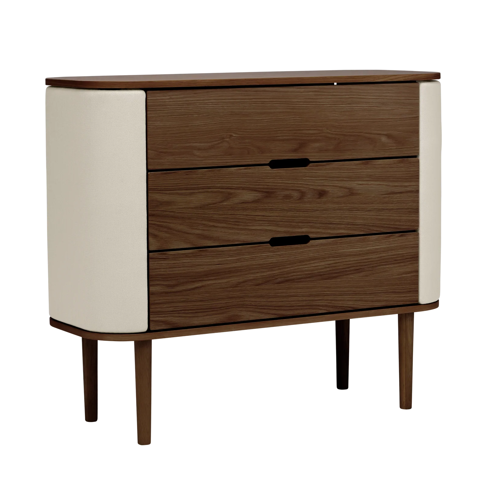 Dankzij zijn veelzijdige karakter voelt deze commode zich net zo thuis in de slaapkamer als in de eetkamer of werkomgeving. Een subtiele blikvanger die functionaliteit koppelt aan Scandinavische eenvoud.