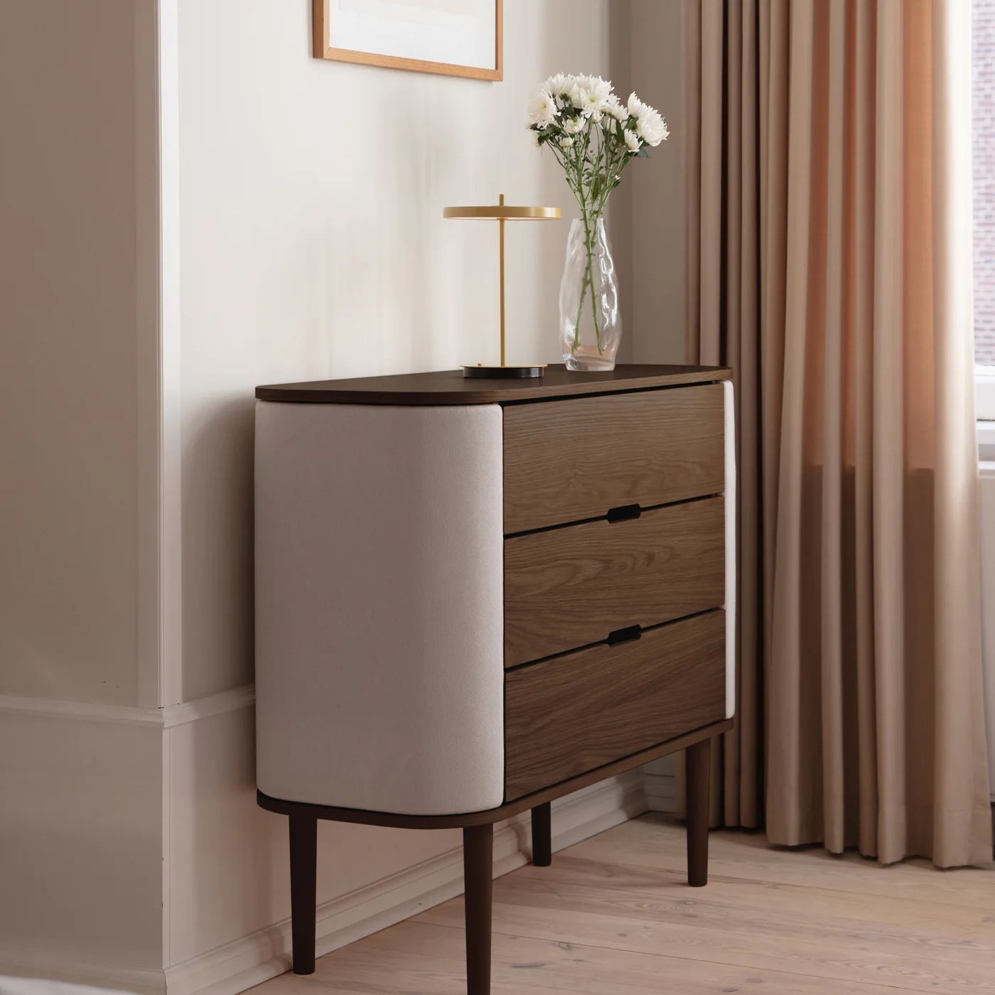 De Treasures commode van Umage brengt elegantie en gebruiksgemak mooi in balans. De zacht gebogen vormen en de warme tint White Sands geven het meubel een rustige, verfijnde uitstraling die moeiteloos opgaat in verschillende interieurs.