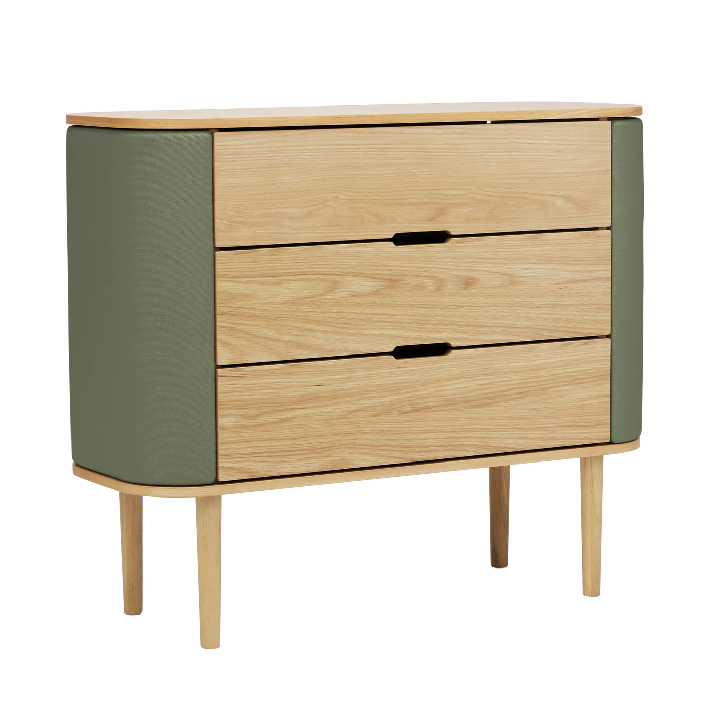 Umage Treasures commode in eik (Morning Meadows) is een verfijnd Scandinavisch opbergmeubel met vleugeldeuren en drie ruime lades. Lees meer