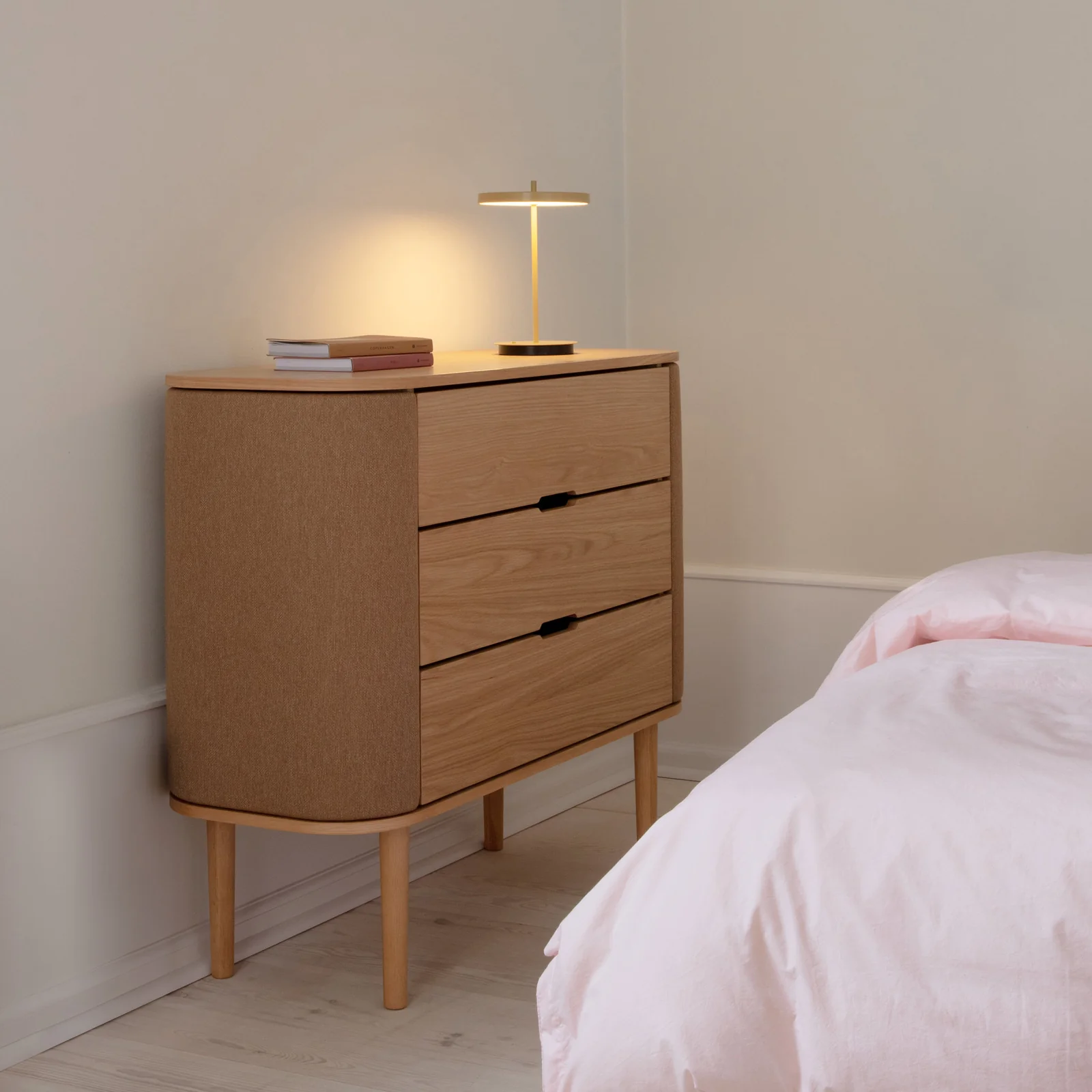 Dankzij zijn veelzijdige karakter voelt deze commode zich net zo thuis in de slaapkamer als in de eetkamer of werkomgeving. Een subtiele blikvanger die functionaliteit koppelt aan Scandinavische eenvoud.