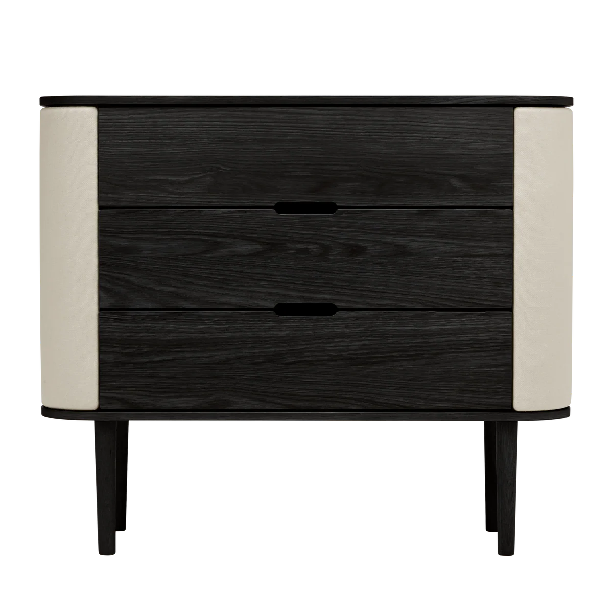 De Umage Treasures commode in zwarte eik met White Sands afwerking verenigt verfijnde elegantie met doordachte functionaliteit. De zacht gebogen zijkanten geven het meubel een vriendelijke, bijna sculpturale uitstraling, terwijl de strakke lijnen zorgen voor rust en balans in het interieur.