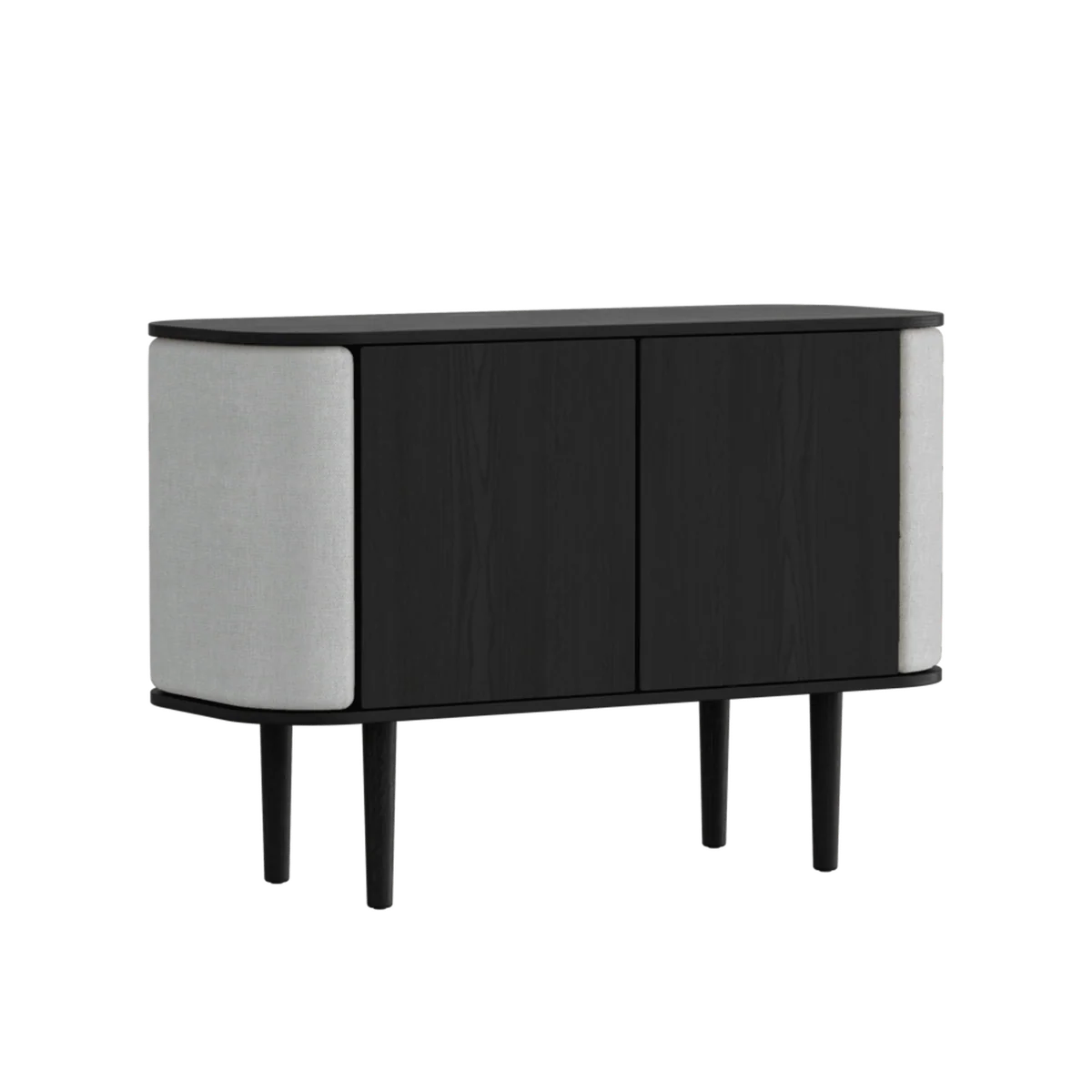 De Umage Treasures dressoir 2 deuren zwarte eik – Sterling combineert tijdloze Scandinavische elegantie met functionaliteit en personaliseerbaarheid. De kast is vervaardigd uit hoogwaardig eikenfineer en wordt gekenmerkt door zijn zachte, afgeronde vormen. De gebogen zijpanelen zijn bekleed met een verwisselbare stof, waardoor het dressoir eenvoudig een nieuwe uitstraling kan krijgen zonder een volledig nieuw meubel aan te schaffen.