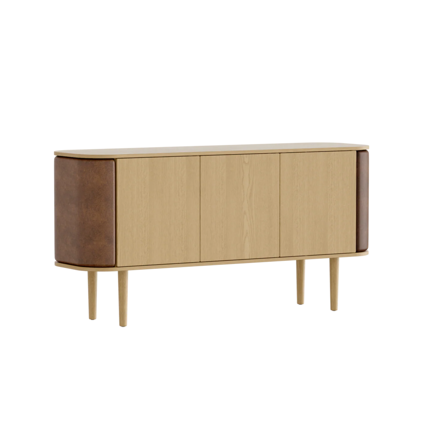 Umage Treasures dressoir met 3 deuren in eik (Brown faux leather) is een aanpasbaar Scandinavisch opbergmeubel met zachte, gestoffeerde zijpanelen en verfijnde uitstraling. Lees meer