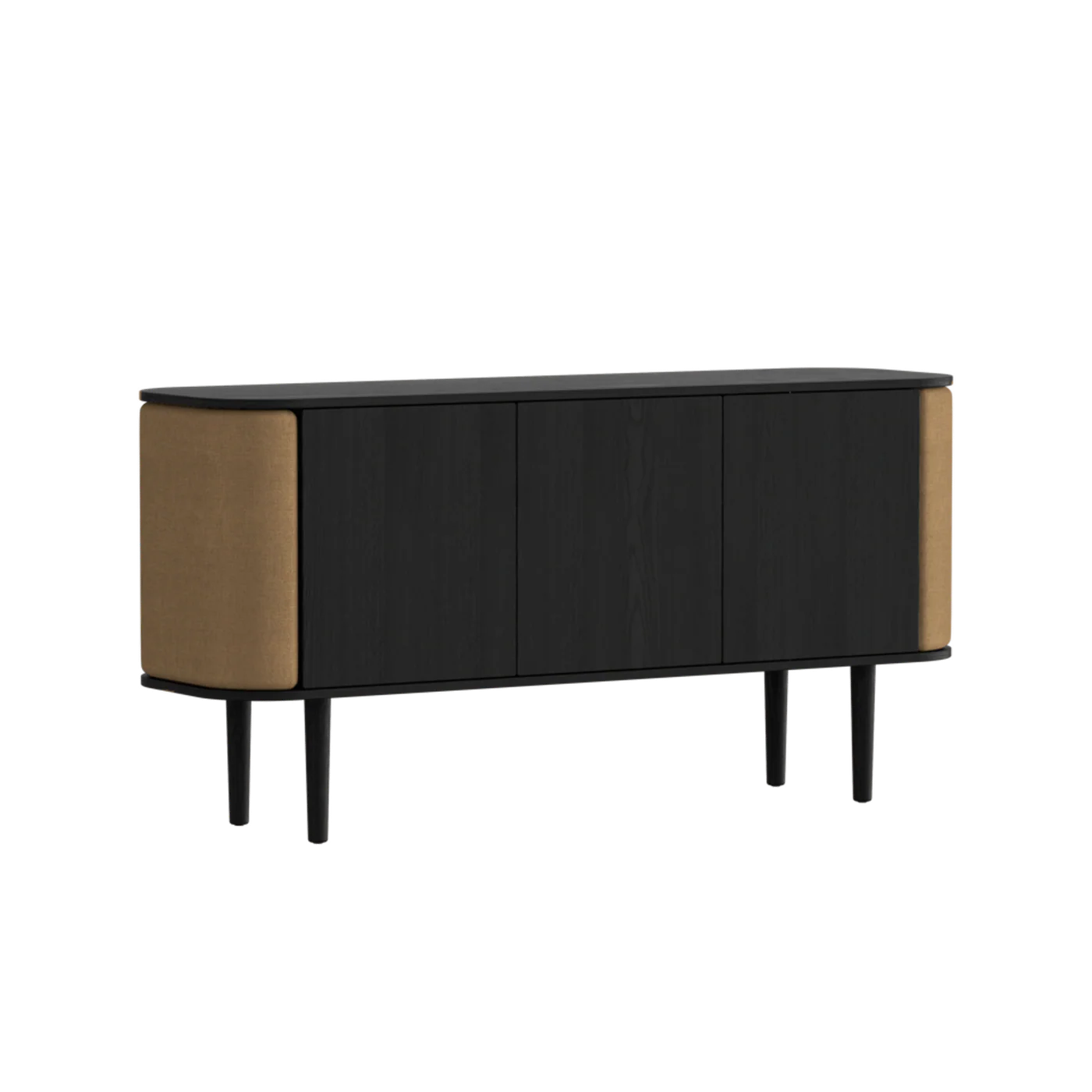Met het Treasures dressoir laat Umage zien hoe elegant functionaliteit kan zijn. De uitvoering in zwarte eik geeft het meubel een krachtig, tijdloos karakter, terwijl de Sugar Brown bekleding op de licht gebogen zijden zorgt voor een warme, zachte toets. Scandinavisch design met net dat beetje extra gevoel.