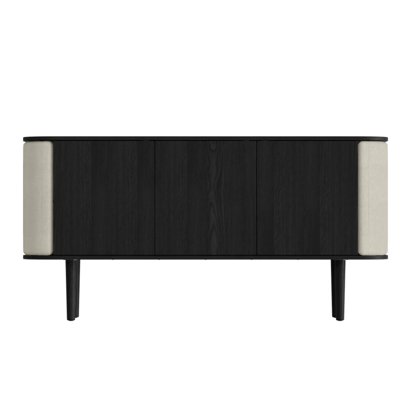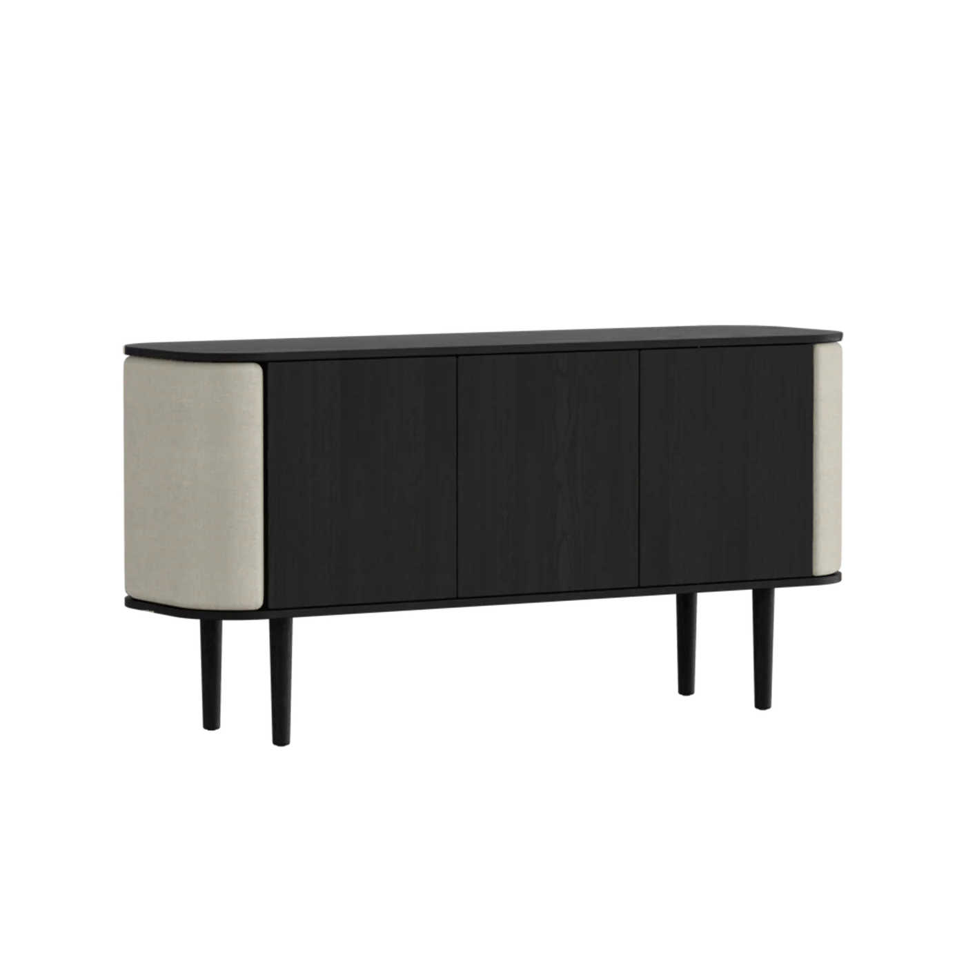 Met het Treasures dressoir laat Umage zien hoe elegant functionaliteit kan zijn. De uitvoering in zwarte eik geeft het meubel een krachtig, tijdloos karakter, terwijl de White Sands bekleding op de licht gebogen zijden zorgt voor een warme, zachte toets. Scandinavisch design met net dat beetje extra gevoel.