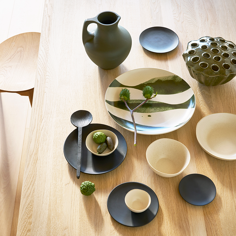 De Aalto schaal van Urban Nature Culture brengt kunst en natuur samen op tafel. Het abstracte, handgeschilderde motief van een school vissen beweegt speels over het oppervlak en geeft de schaal een unieke uitstraling. Uitgevoerd in mat beige keramiek met een subtiele spikkel, straalt deze schaal rust en ambacht uit.
