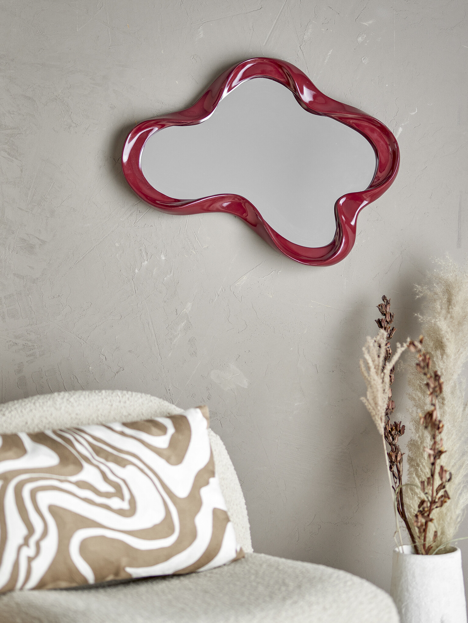 Bloomingville Violeta is een opvallende wandspiegel met rode hoogglanslijst in polyresin, speels en stijlvol. Lees meer