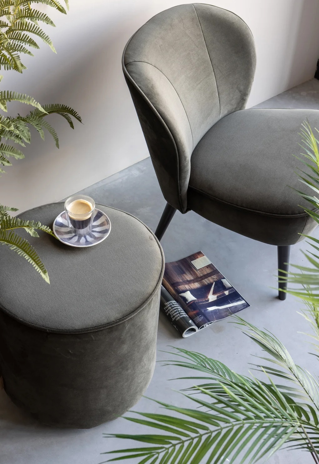 Subtiel in vorm maar groots in uitstraling, dat is de Sara poef hoog van WOOOD. Deze elegante poef is bekleed met luxueus fluweel en valt op door de zachte rondingen. Dankzij zijn compacte formaat en comfortabele zitting is hij ideaal als extra zitplek, voetenbankje of decoratief accent in je interieur.