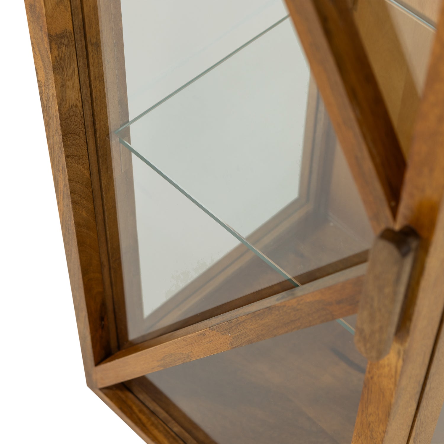 De Kella 1-deurs kast van het Nederlandse merk WOOOD is een compacte vitrinekast die functionaliteit en elegantie combineert. Dankzij het natuurlijke mangohout in combinatie met glas straalt de kast warmte en moderniteit uit. Achter de glazen deur vind je meerdere planken waar je je mooiste servies, boeken of decoratieve objecten kunt uitstallen. Elk item is uniek, met een eigen houttekening en subtiele nerven die karakter toevoegen aan je interieur.