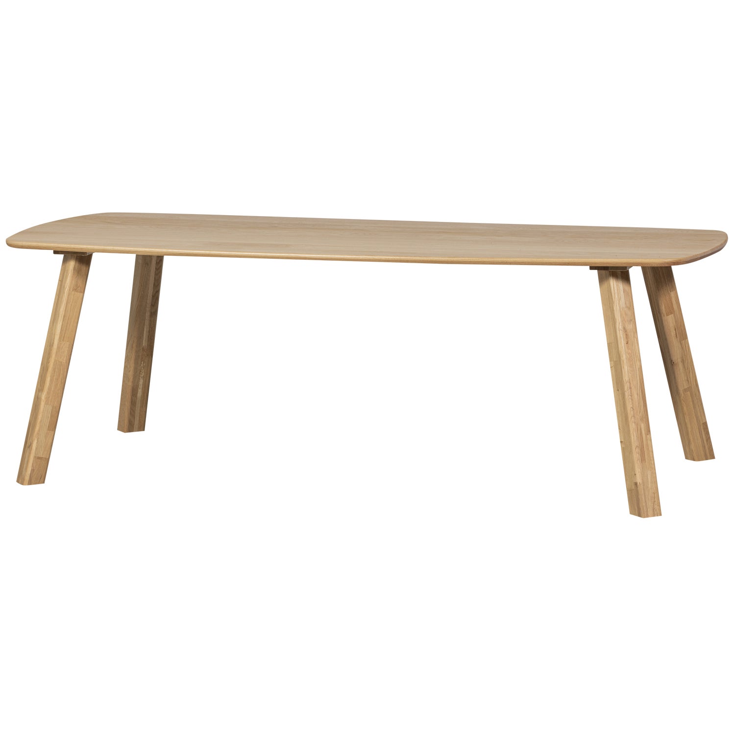 Het tafelblad en de poten zijn gemaakt van FSC-mix gecertificeerd eikenhout en afgewerkt met een transparante lak, waardoor de natuurlijke kleur van het hout prachtig zichtbaar blijft. Dankzij de slimme constructie kunnen de poten in vier verschillende posities worden gemonteerd, zodat je de tafel perfect kunt afstemmen op jouw ruimte en stijl.